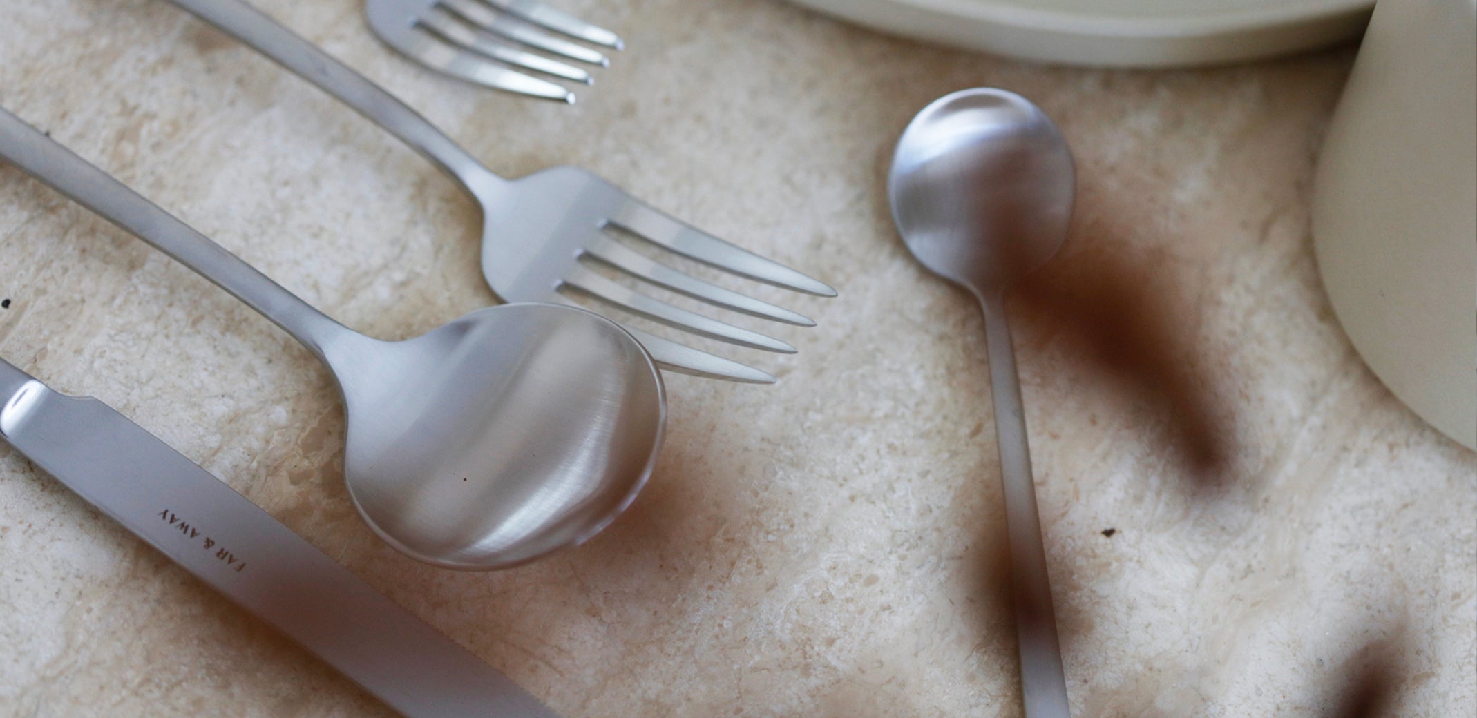 Designing the perfect cutlery set is a balancing act of finding the right hardness, thickness, weight, balance, and finishing. We chose a softer silhouette with a balanced weight distribution that allows each piece to feel effortless when used. A semi-matte brushed steel finish makes the set versatile and fit seamlessly into your existing table decor.