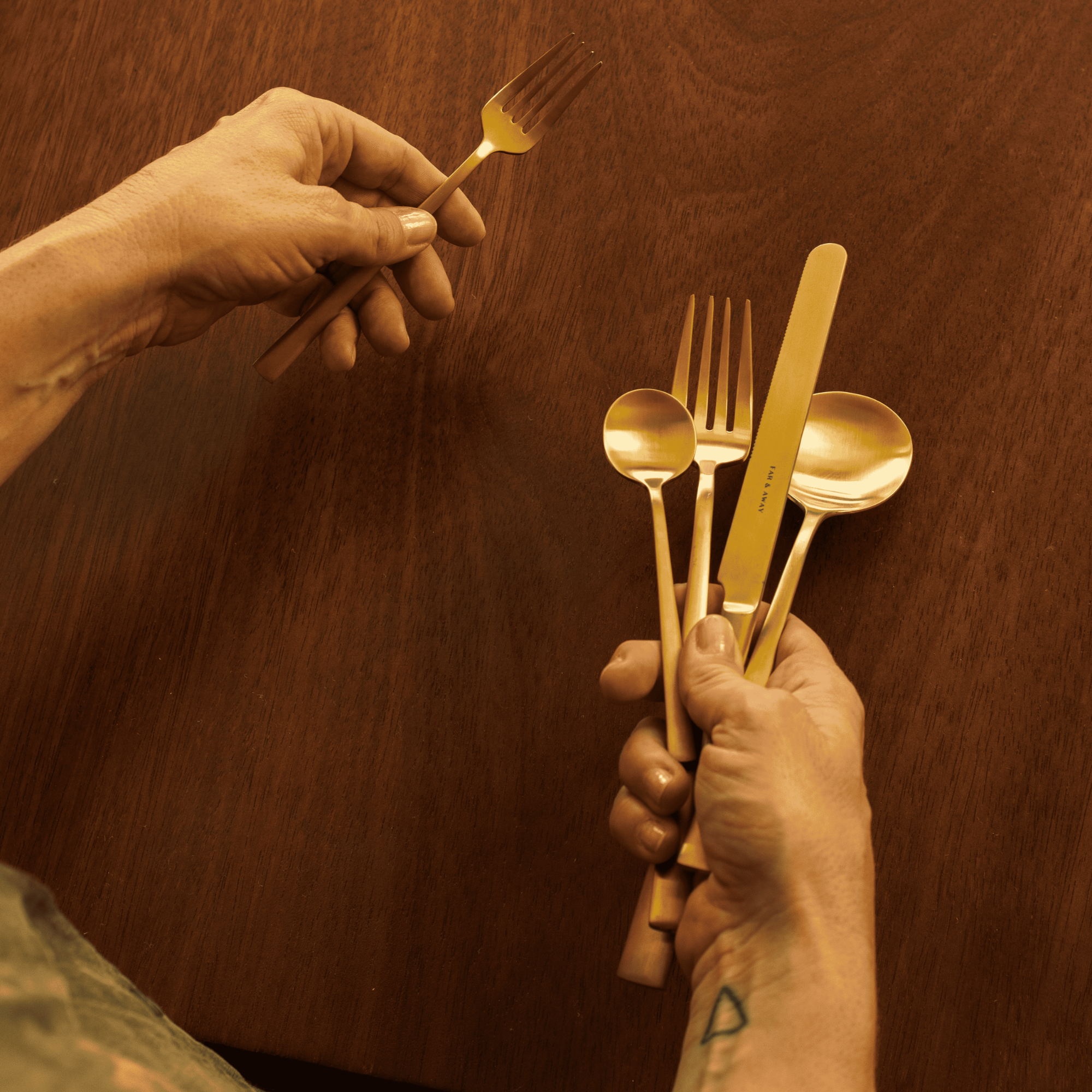 Our cutlery collection is crafted in family owned factory in a region of Northern Portugal known for generations of metalworking. It's a tradition deeply embedded in the local culture and treasured expertise is passed down the lineage. Nothing goes to waste during production as metal scraps are recycled into new sets. Each piece is carefully hand finished, checked for imperfections, and packed into our 100% recyclable cutlery box.
